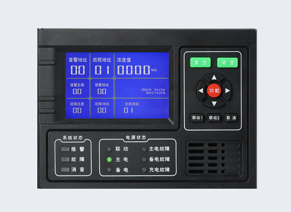 控制器通過(guò)查詢(xún)方式獲得探測(cè)器信息,經(jīng)高速CPU數(shù)據(jù)處理,通過(guò)LCD顯示出探測(cè)器相應(yīng)的濃度、狀態(tài)并輸出相應(yīng)的控制器信號(hào)。